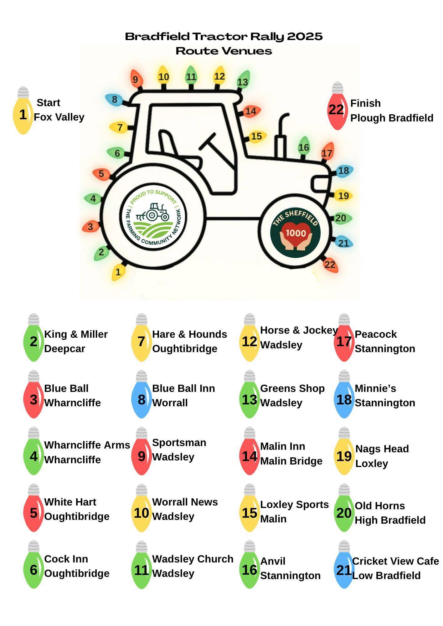 The 2025 Bradfield Christmas Tractor Run will take place on Sunday, December 14th, 2025. Starting at Fox Valley at 5pm and finishing at The Bradfield Plough at approx 7pm.